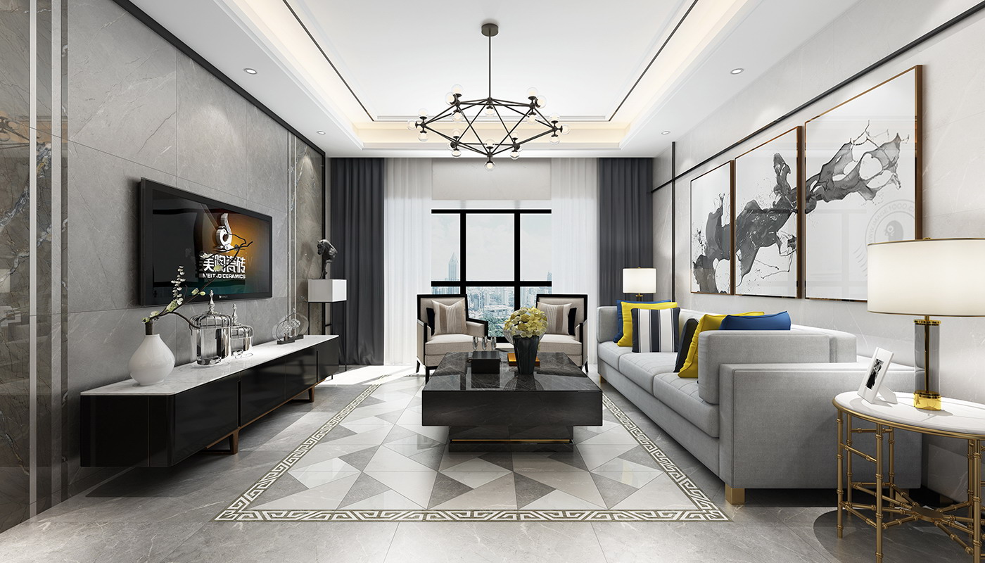 金白交融的磚面上,流轉著輕盈飄逸的花紋,優(yōu)雅的色調(diào),